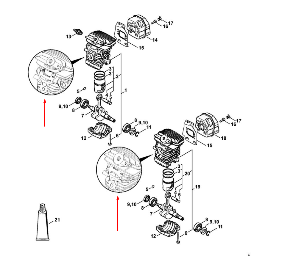 3 | Цилиндр - Шумоглушитель | MS 181 C-BE ErgoStart | Бензопила STIHL | Запчасти по России | Сервисное обслуживание