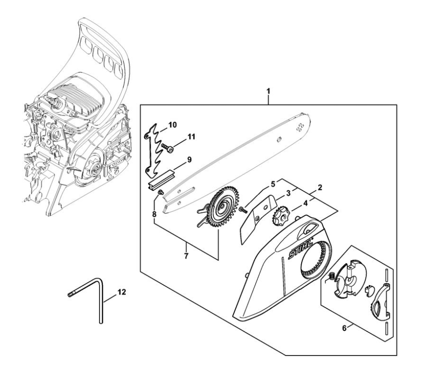 6 | Устройство для защиты рук - Тормоз пильной цепи MS 181 C | MS 181 C-BE ErgoStart | Бензопила STIHL | Запчасти по России | Сервисное обслуживание