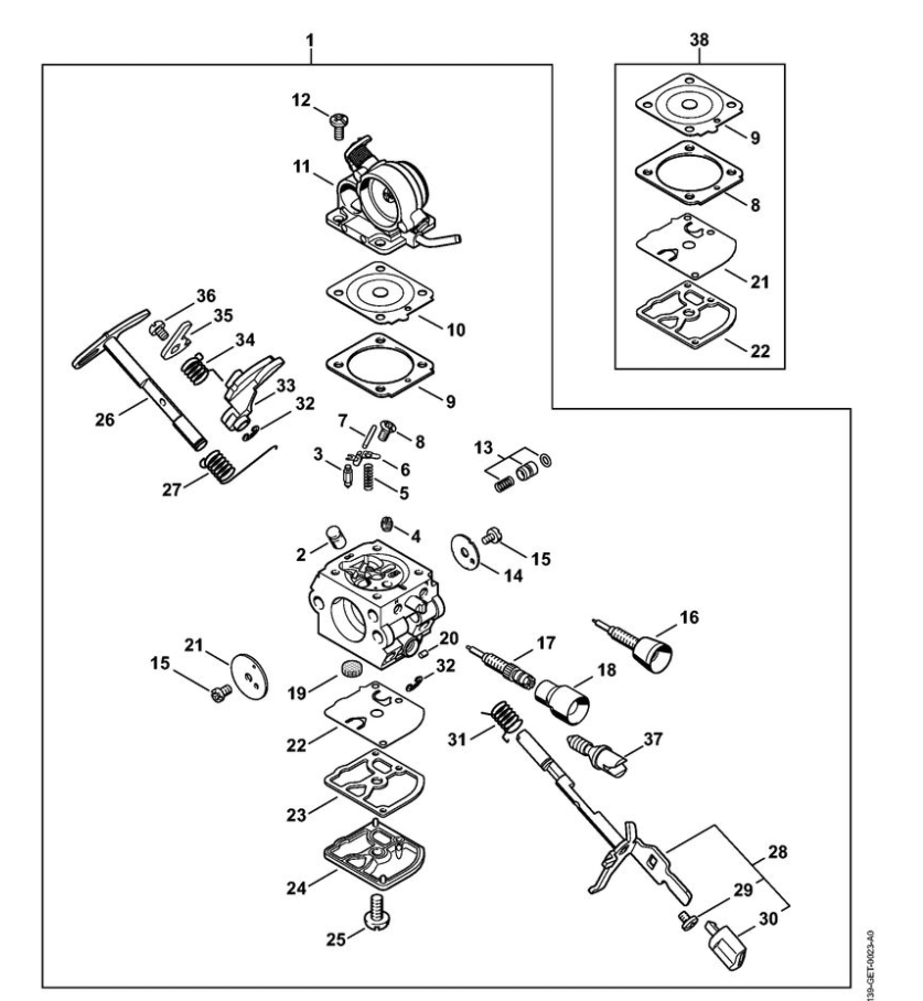 9 | Карбюратор 1139/25 | MS 181 C-BE ErgoStart | Бензопила STIHL | Запчасти по России | Сервисное обслуживание