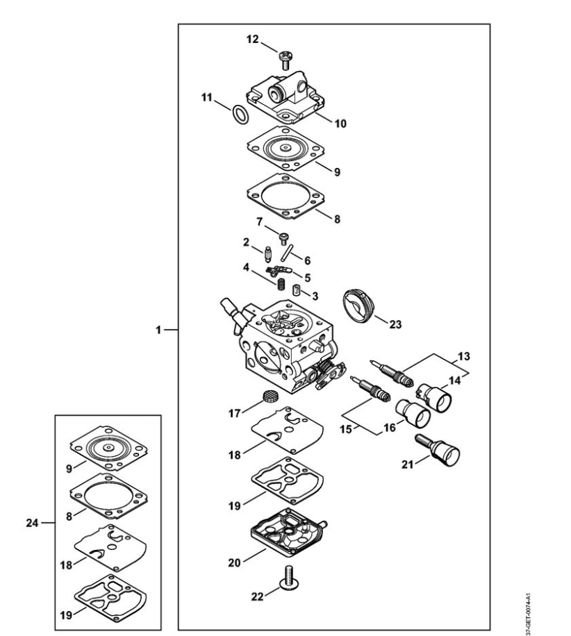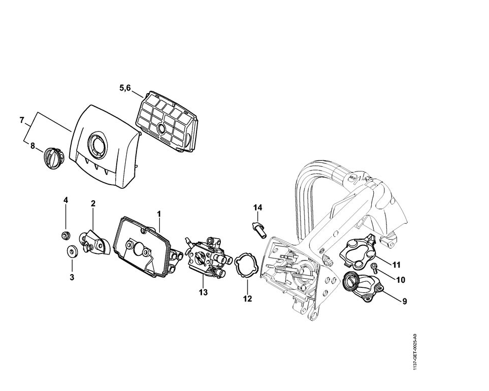 8 | Карбюратор 1137/21 | Бензиномоторные пилы MS 194 T | MS 194 TC STIHL | Запчасти по России | Ремонт