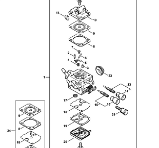 8 | Карбюратор 1137/21 | Бензиномоторные пилы MS 194 T | MS 194 TC STIHL | Запчасти по России | Ремонт
