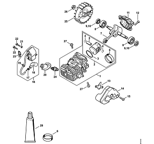1 | Цилиндр с поршнем - Система зажигания | Бензиномоторные пилы MS 194 T | MS 194 TC STIHL | Запчасти по России | Ремонт