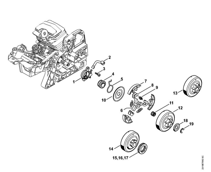 16 | Инструмент - Принадлежности | MS 231 | Бензопила STIHL | Запчасти по России | Ремонт