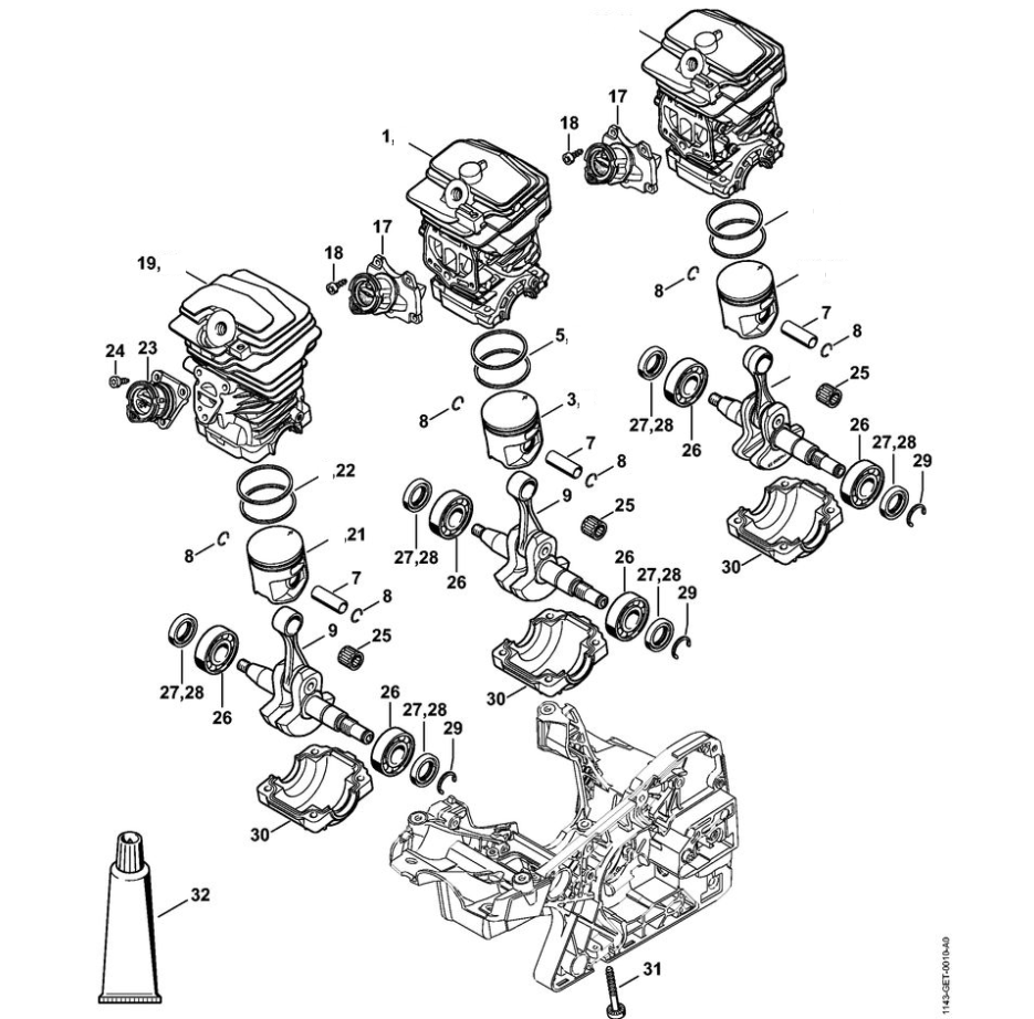 2 | Цилиндр | MS 231 | Бензопила STIHL | Запчасти по России | Ремонт