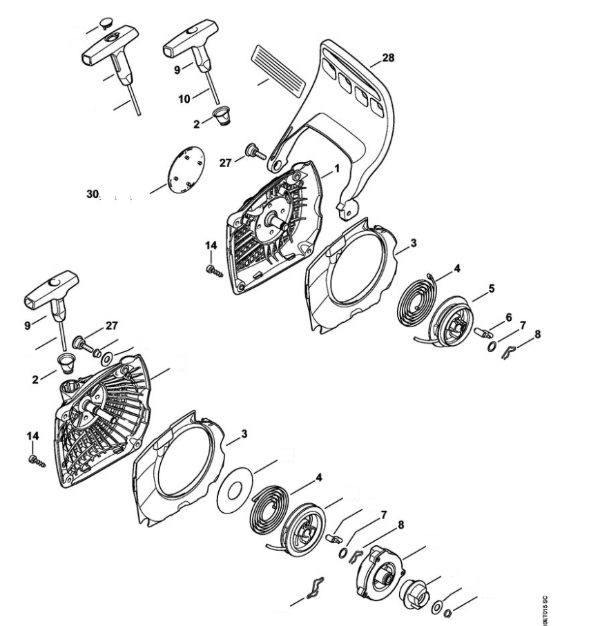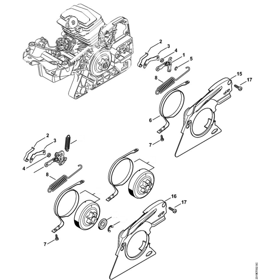 8 | Пусковое устройство - Приспособление для защиты рук | MS 231 | Бензопила STIHL | Запчасти по России | Ремонт