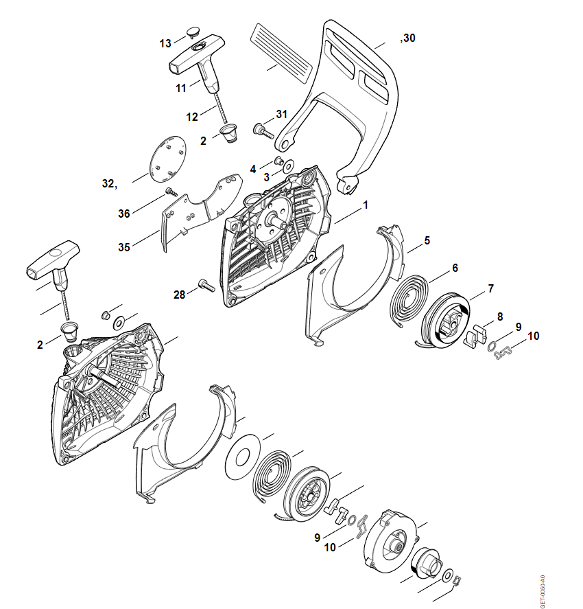 7 | Пусковое устройство - Приспособление для защиты рук | MS 261 | Бензопила STIHL | Запчасти по России | Сервисное обслуживание