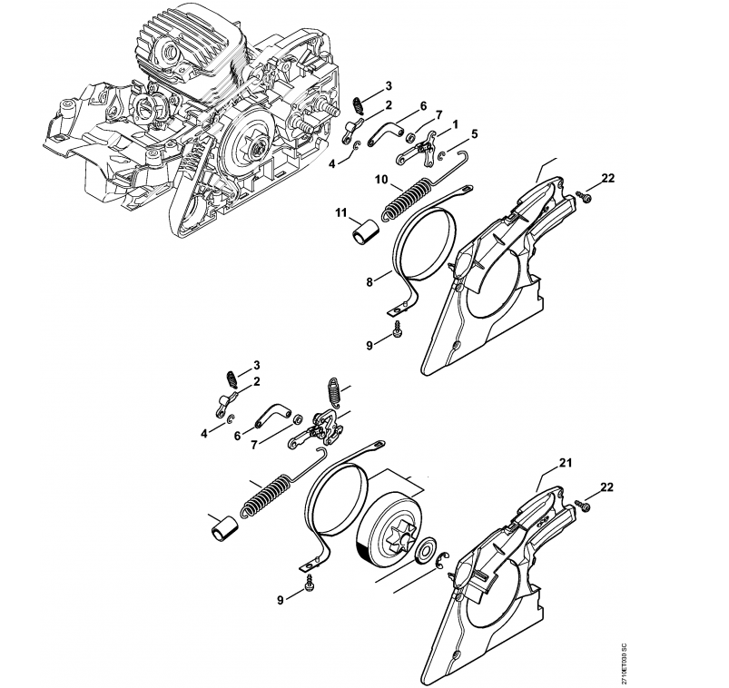8 | Пусковое устройство - Приспособление для защиты рук | MS 291 C | Бензопила STIHL | Запчасти по России | Сервисное обслуживание