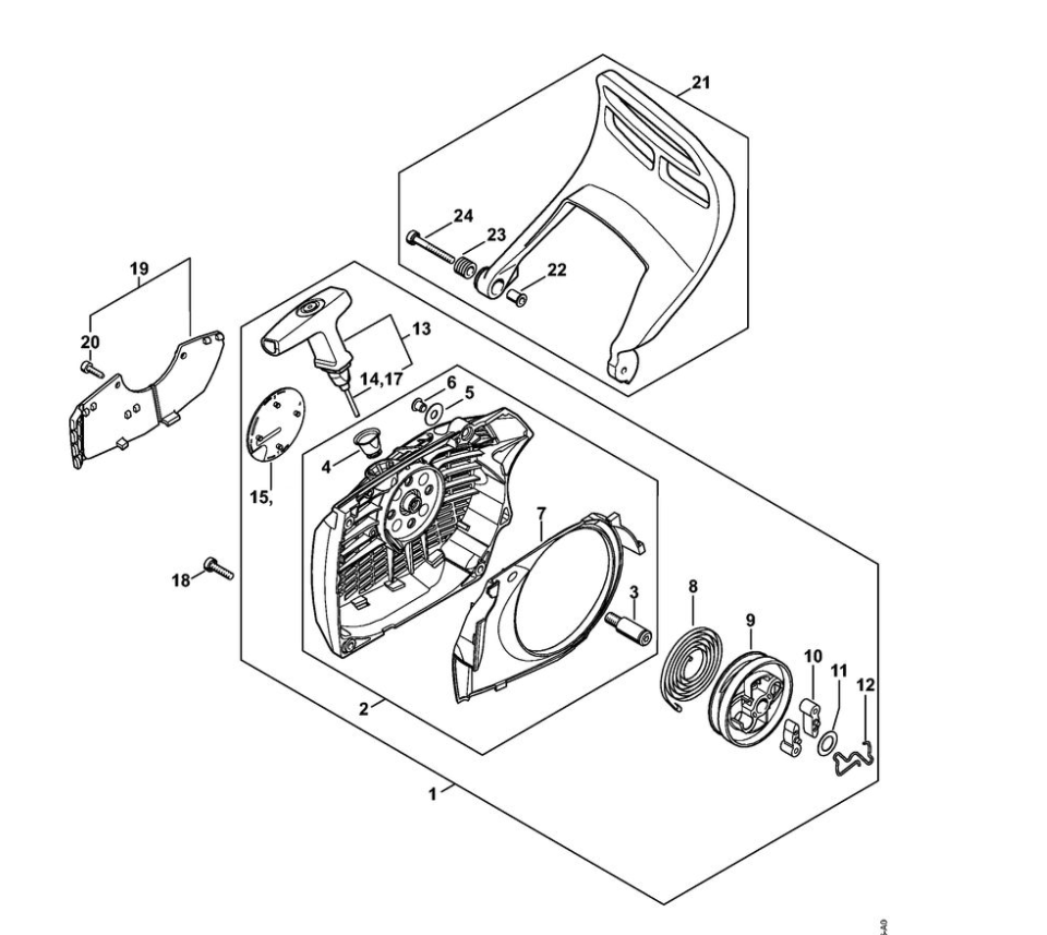 8 | Пусковое устройство - Приспособление для защиты рук | MS 661 | Бензопила STIHL | Запчасти по России | Сервисное обслуживание