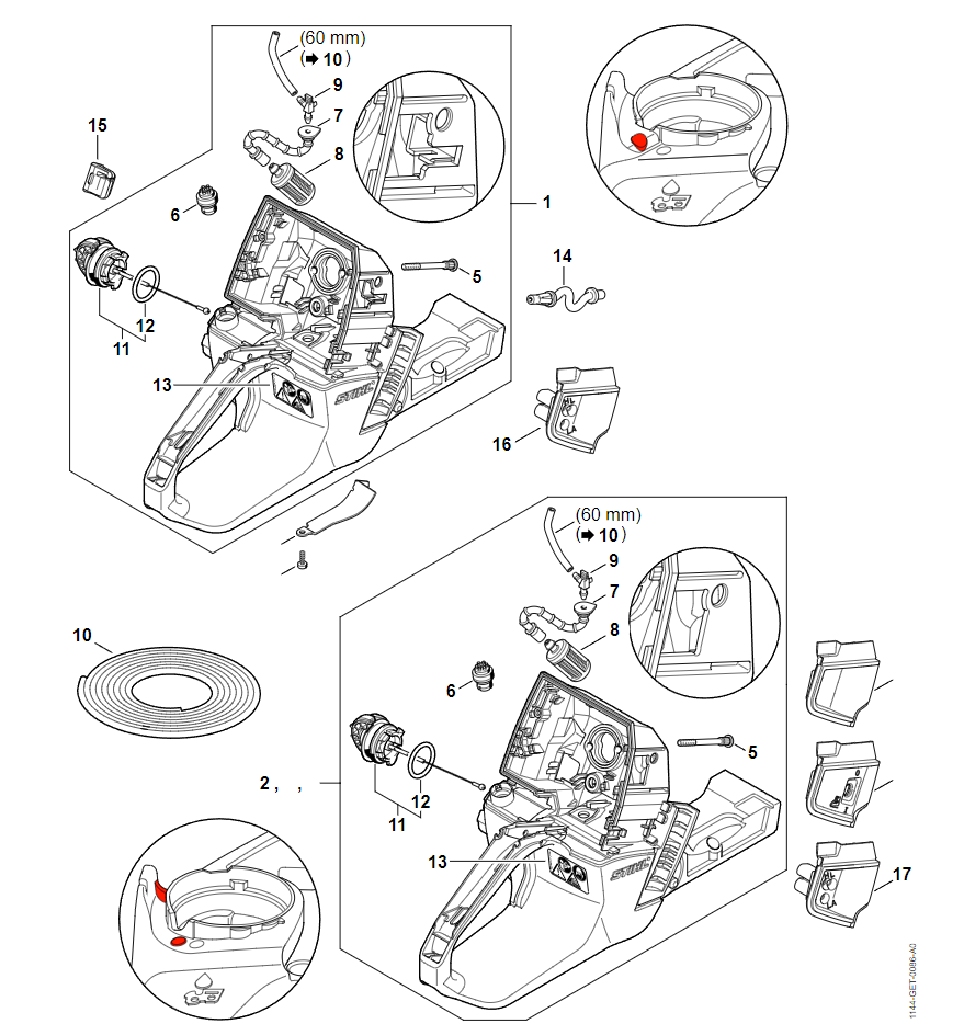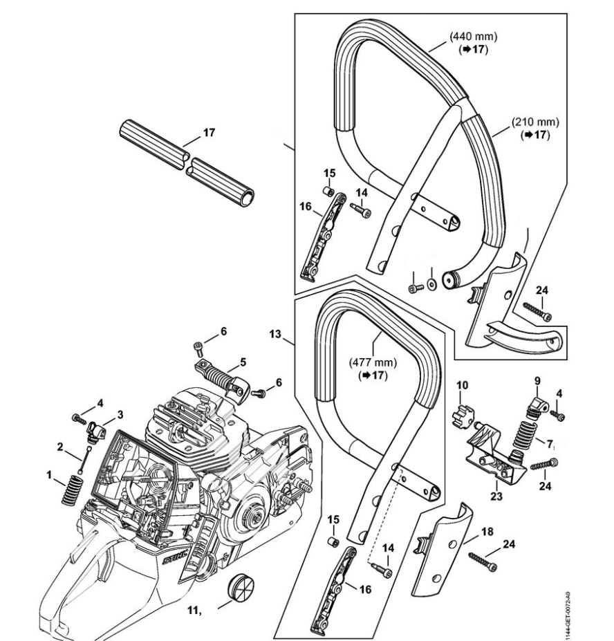14 | Антивибрационная система - Трубчатая рукоятка | MS 661 | Бензопила STIHL | Запчасти по России | Сервисное обслуживание