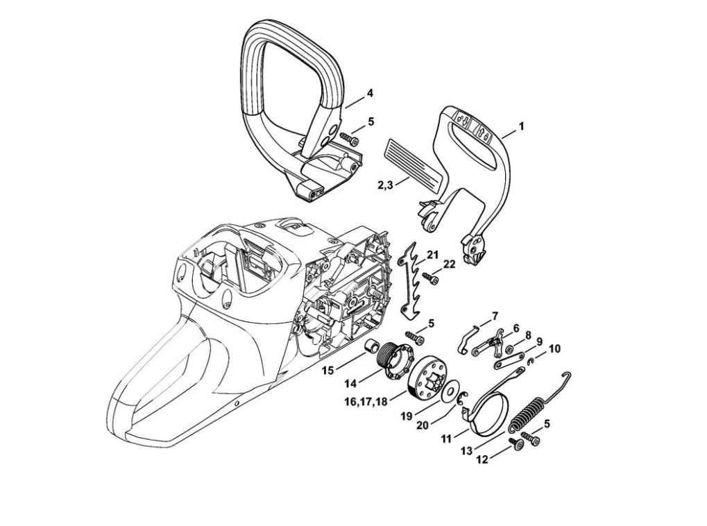 1 | Корпус рукоятки - Кожух | MSA 160 C-B |Аккумуляторная пила STIHL | Запчасти по России | Сервисное обслуживание