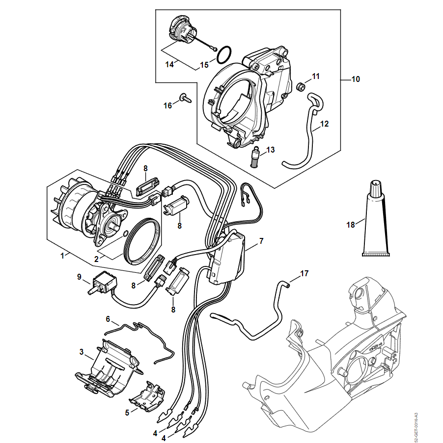 2 | Электродвигатель - Электронный модуль - Масляный бачок | MSA 161 T |Аккумуляторная пила STIHL | Запчасти по России | Сервисное обслуживание