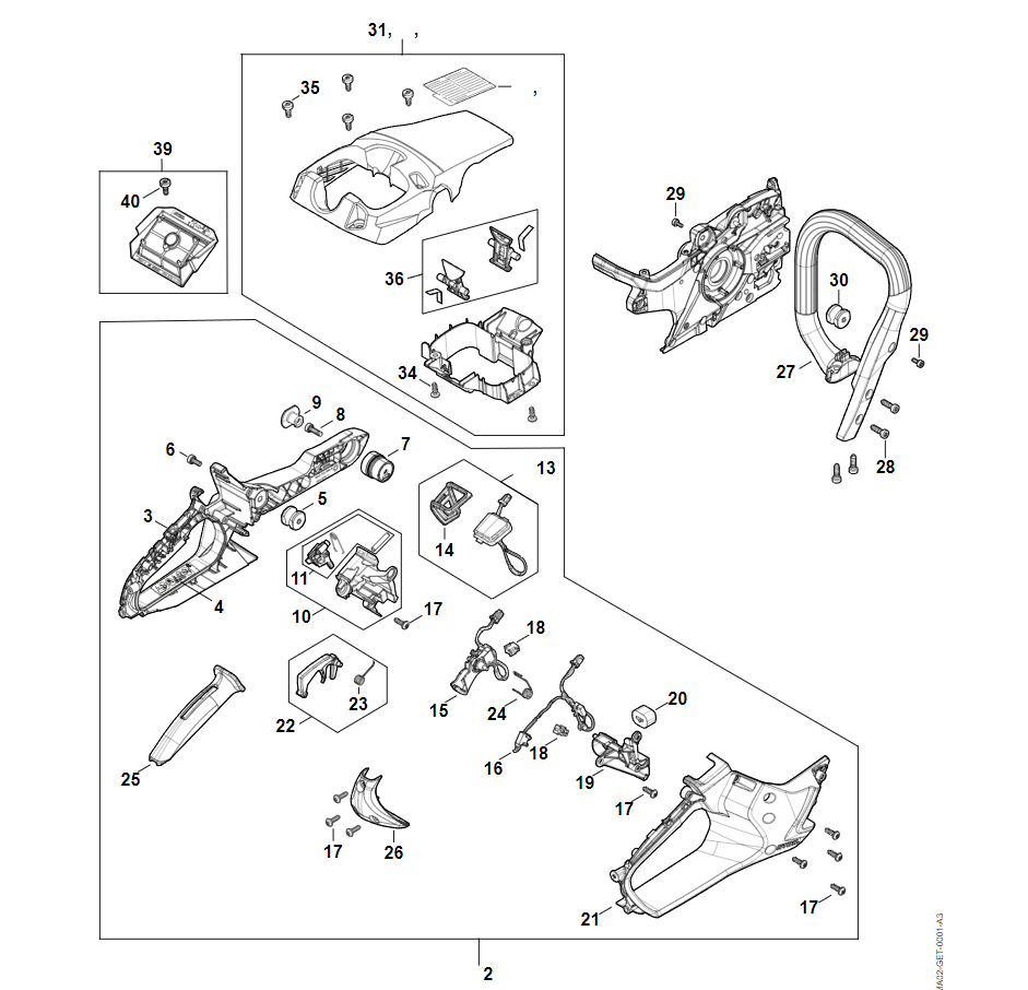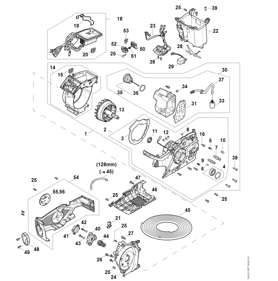 1 | Электродвигатель - Электронный модуль - Масляный бачок | MSA 300.0 C-O |Аккумуляторная пила STIHL | Запчасти по России | Сервисное обслуживание