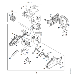 2 | Корпус рукоятки - Трубчатая рукоятка - Кожух | MSA 300.0 C-O |Аккумуляторная пила STIHL | Запчасти по России | Сервисное обслуживание