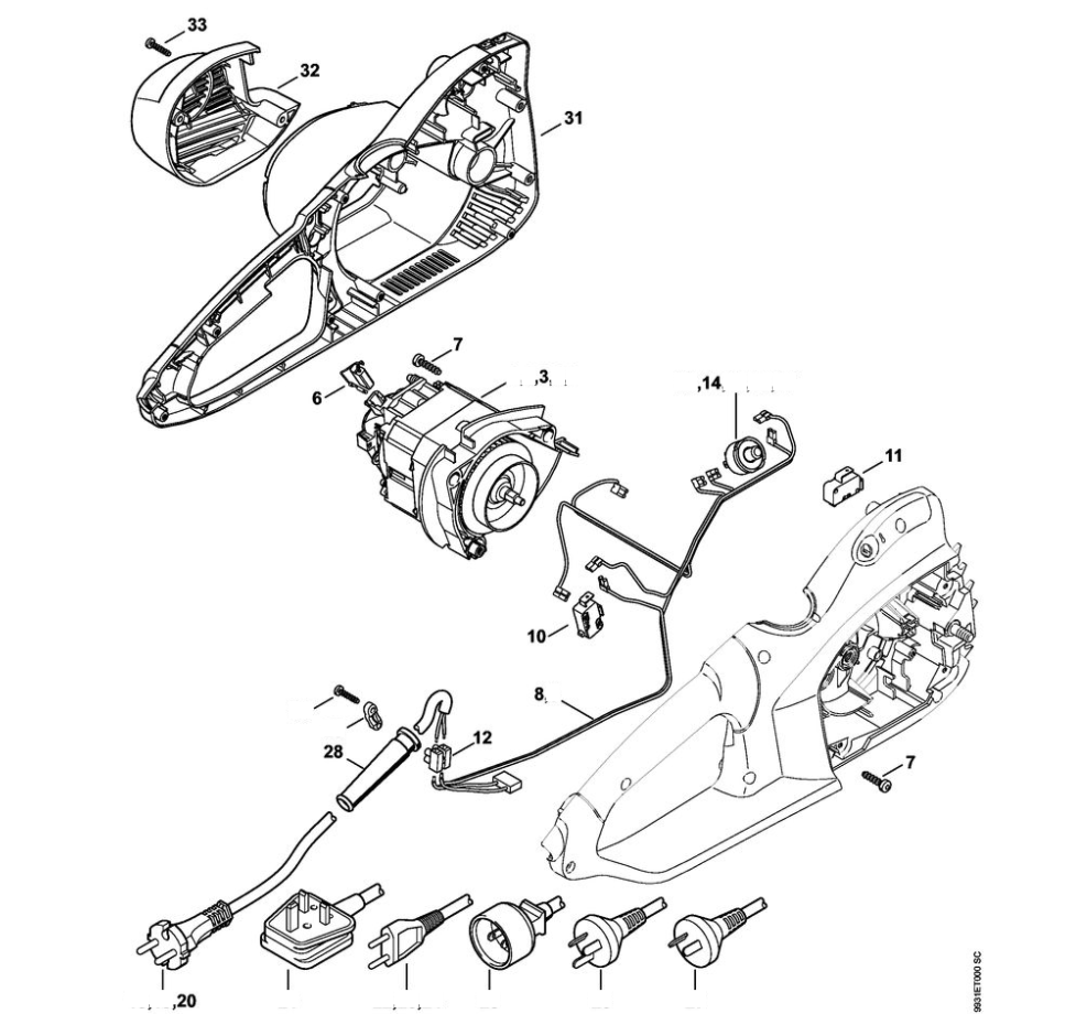 1 | Электродвигатель - Картер двигателя | MSE 190 C-Q | Электропила STIHL | Запчасти по России | Сервисное обслуживание