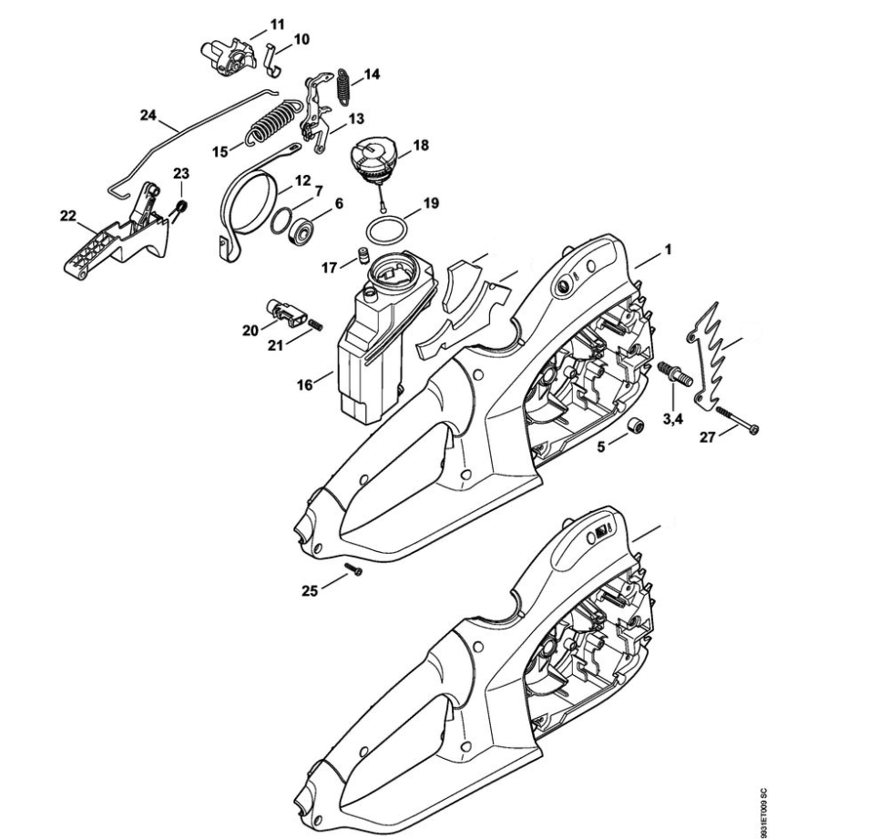 3 | Корпус рукоятки - Масляный бачок | MSE 190 C-Q | Электропила STIHL | Запчасти по России | Сервисное обслуживание