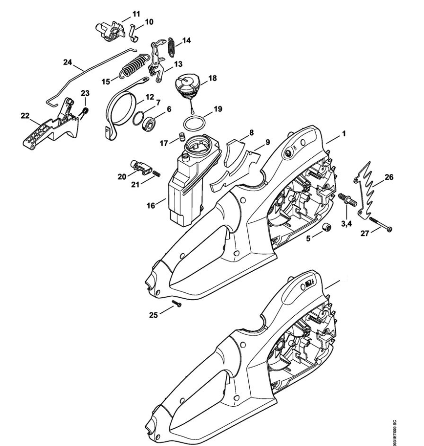 3 | Корпус рукоятки - Масляный бачок | MSE 210 C-BQ | Электропила STIHL | Запчасти по России | Сервисное обслуживание