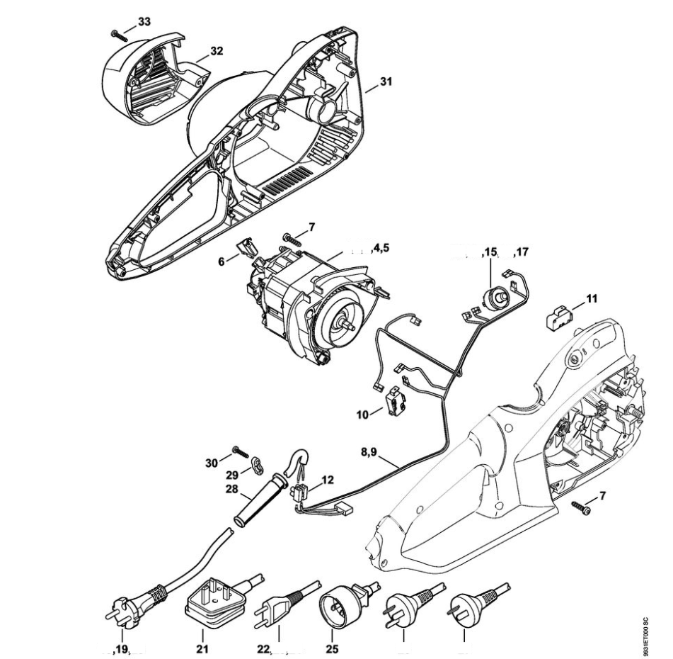 1 | Электродвигатель - Картер двигателя | MSE 210 C-BQ | Электропила STIHL | Запчасти по России | Сервисное обслуживание