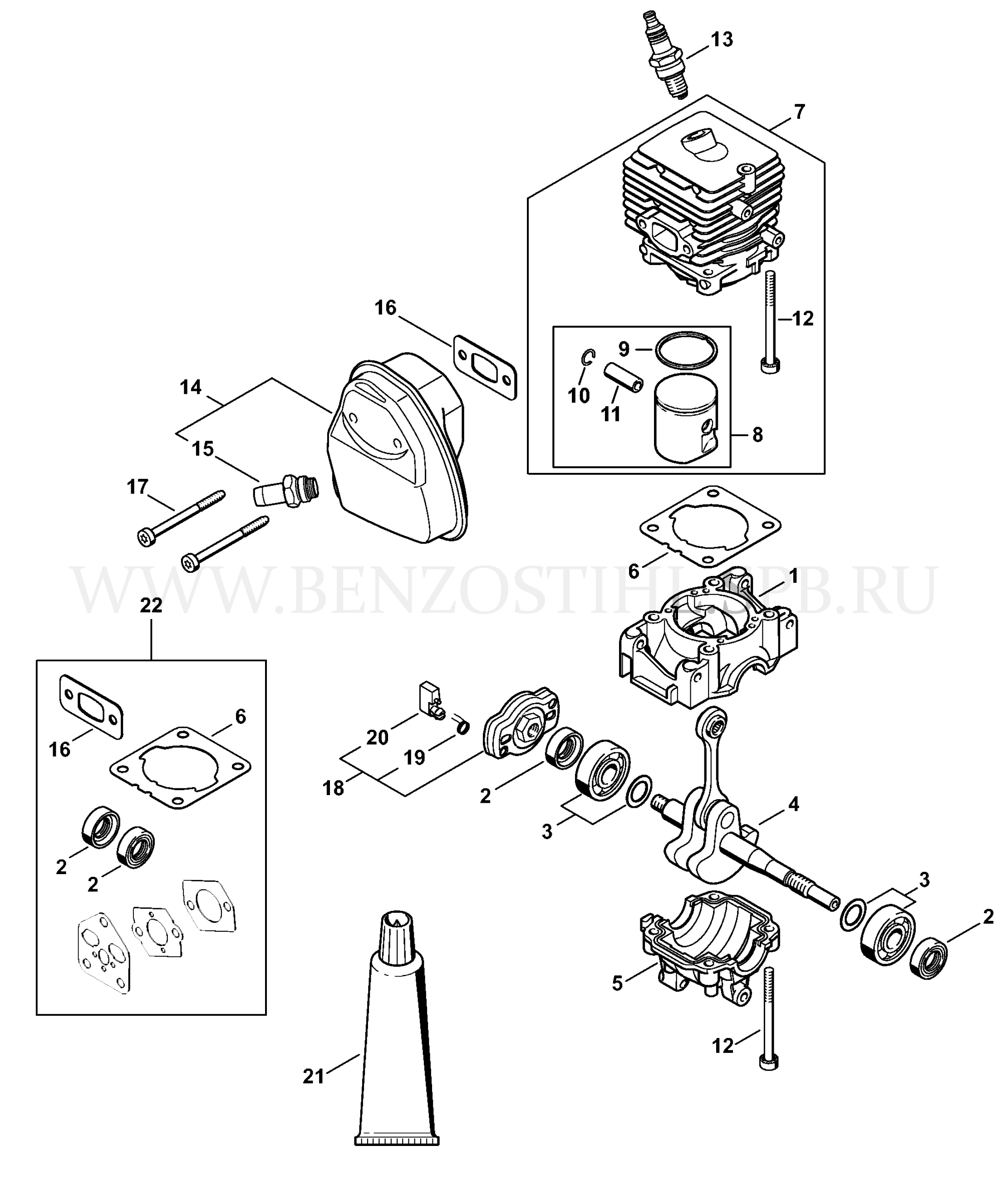Мультисистема (MM) Мультимотор (MM) MM 56 Картер - Цилиндр - Шумоглушитель