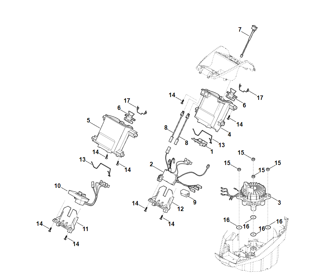 3 | C - Держатель аккумуляторной батареи, электроника, электродвигатель | MVP 850.0 S | Аккумуляторный двигатель STIHL | Запчасти по России | Сервисное обслуживание