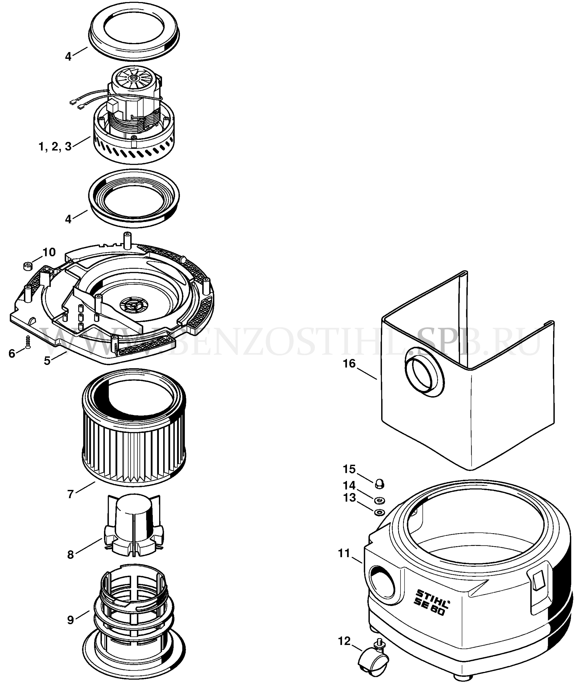 Электродвигатель - Фильтр - Резервуар SE 60, SE 60 C, SE 60 E