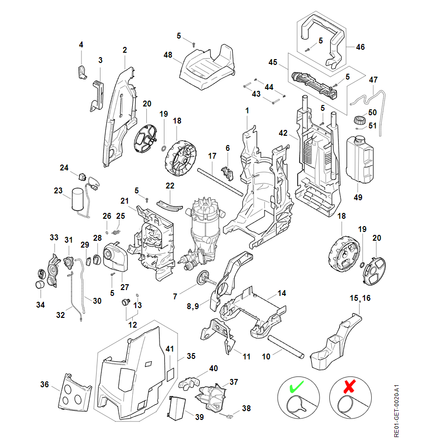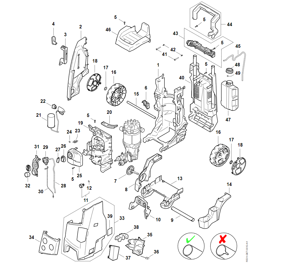 2 | Ходовая тележка, Воздухопровод, Защитный кожух, Корпус выключателя RE 170 | RE 170 | Мойка высокого давления STIHL | Запчасти по России | Сервисное обслуживание