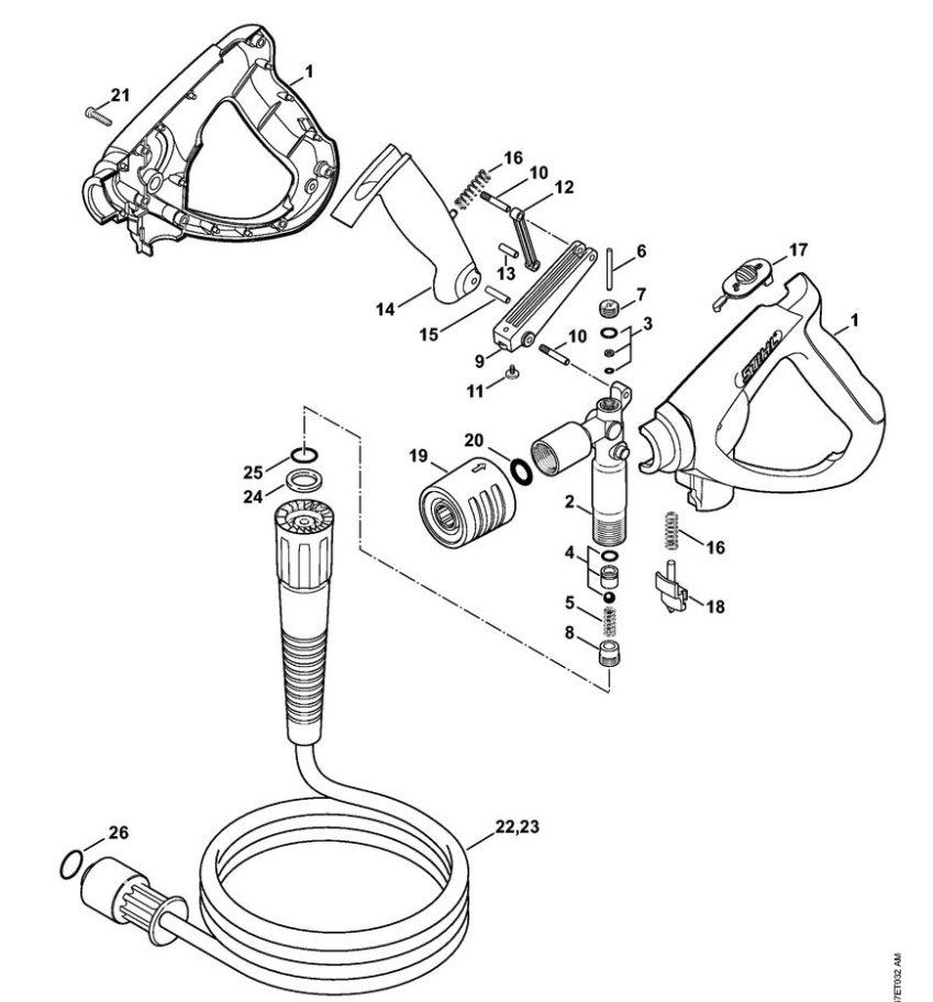 8 | Пистолет-распылитель - Высоконапорный шланг | RE 232 | Мойка высокого давления STIHL | Запчасти по России | Сервисное обслуживание