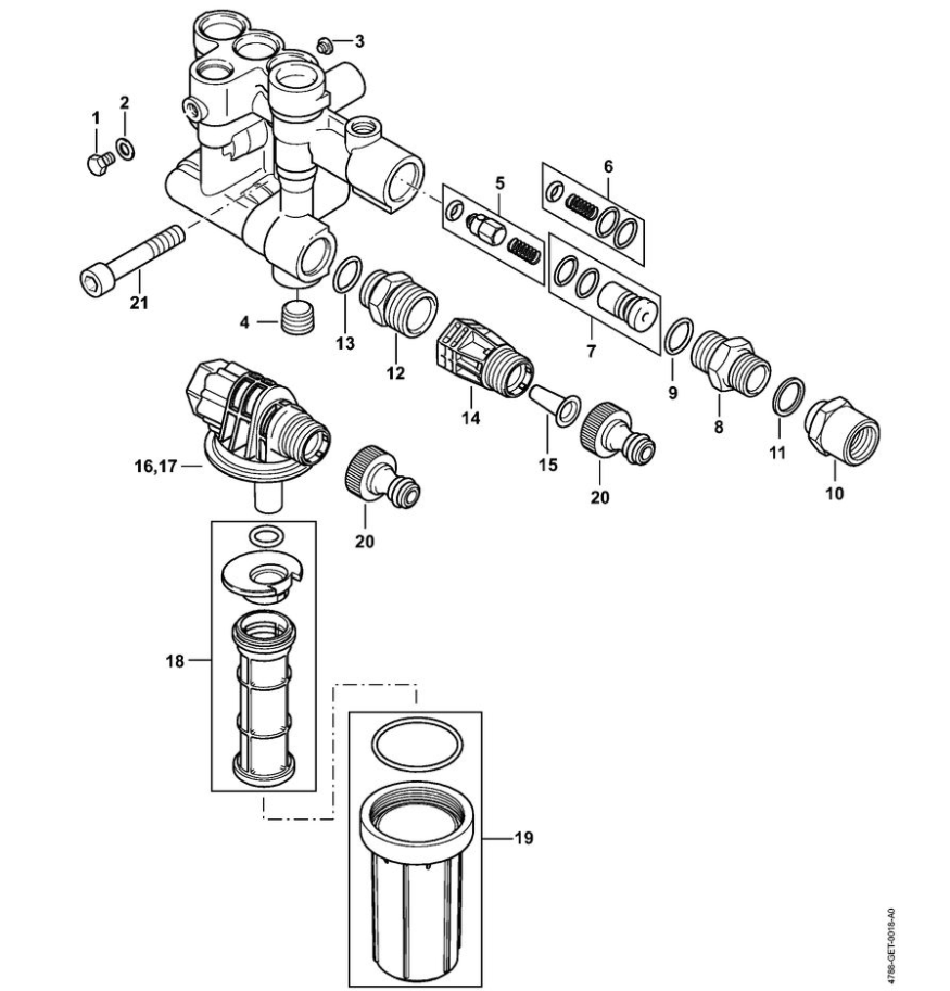 5 | Клапанный блок, Присоединение воды RE 232 | RE 232 | Мойка высокого давления STIHL | Запчасти по России | Сервисное обслуживание