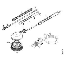 10 | Вращающееся сопло - Вращающаяся щётка для мытья - Всасывающий шланг | RE 232 | Мойка высокого давления STIHL | Запчасти по России | Сервисное обслуживание