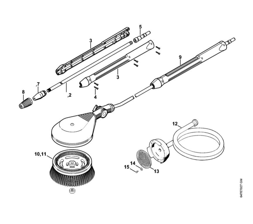 11 | Вращающееся сопло - Вращающаяся щётка для мытья - Всасывающий шланг | RE 282 PLUS | Мойка высокого давления STIHL | Запчасти по России | Сервисное обслуживание