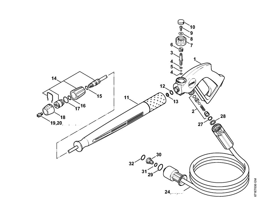 10 | Пистолет-распылитель - Высоконапорный шланг | RE 361 | Мойка высокого давления STIHL | Запчасти по России | Сервисное обслуживание