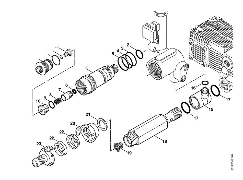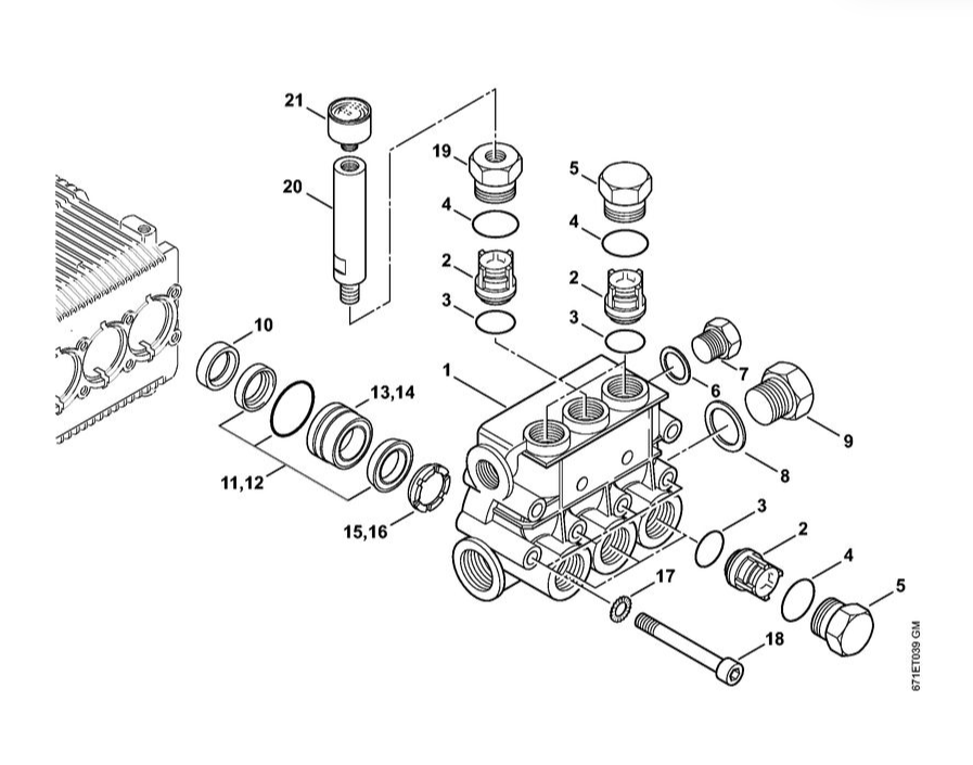 4 | Клапанный блок | RE 361 | Мойка высокого давления STIHL | Запчасти по России | Сервисное обслуживание