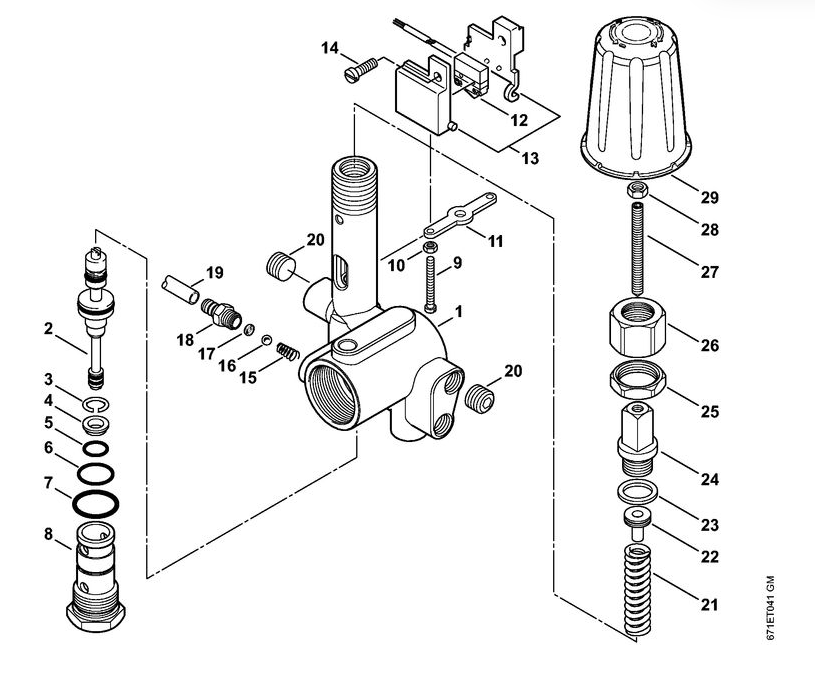 6 | Регулировочный предохранительный блок | RE 361 | Мойка высокого давления STIHL | Запчасти по России | Сервисное обслуживание