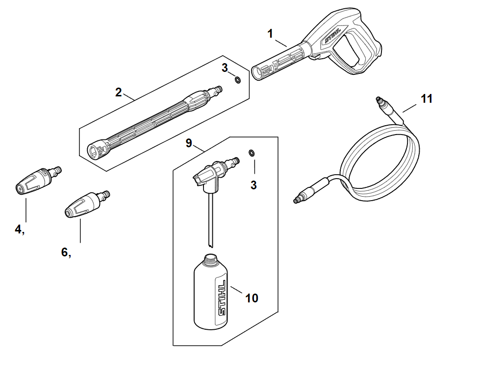 3 | Пистолет-распылитель - Струйная трубка | RE 80.0 | Мойка высокого давления STIHL | Запчасти по России | Сервисное обслуживание