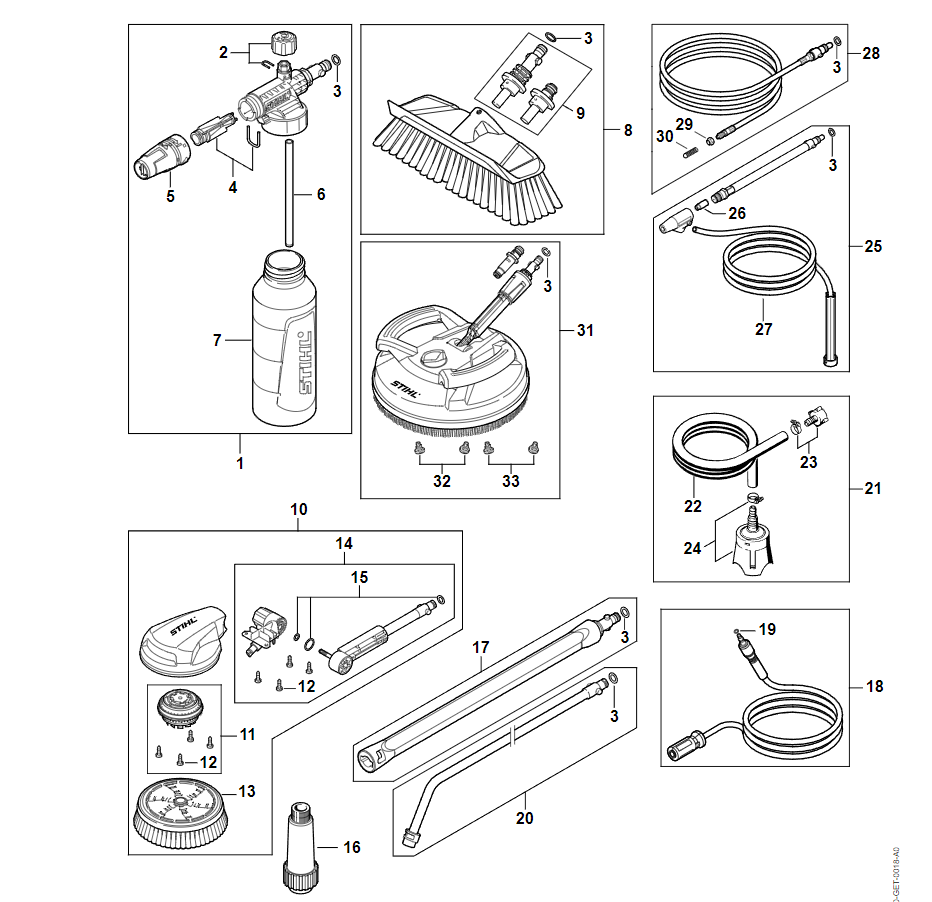 9 | Средства для ухода | RE 80.0 | Мойка высокого давления STIHL | Запчасти по России | Сервисное обслуживание