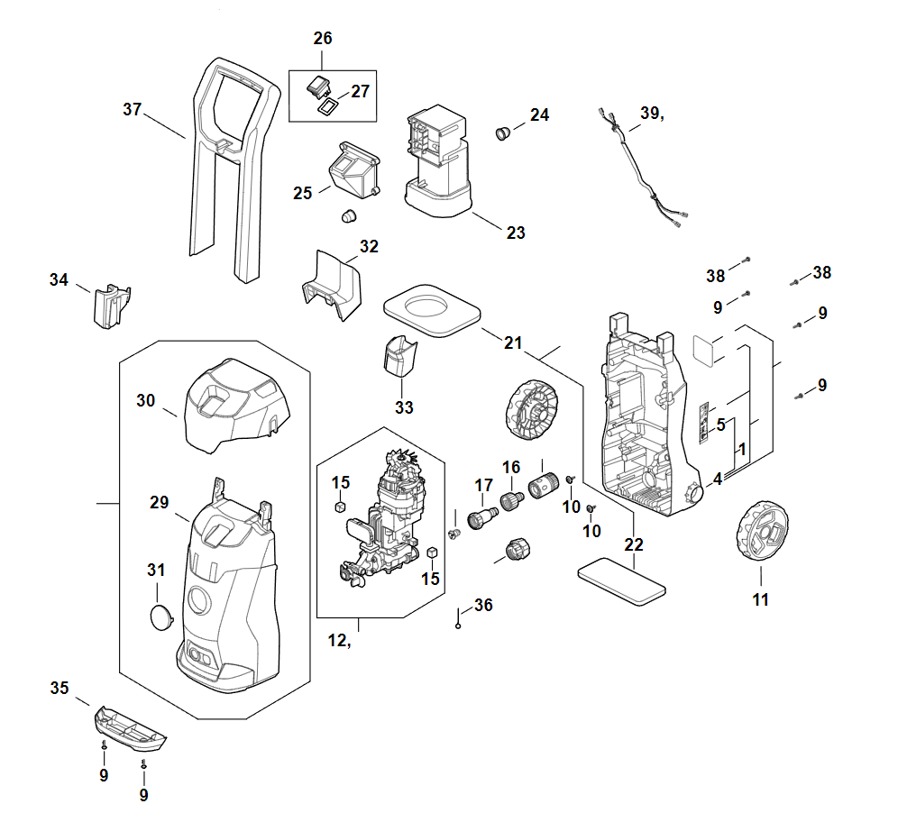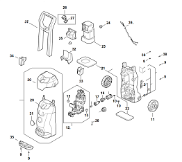 1 | Ходовая тележка, Воздухопровод, Защитный кожух, Корпус выключателя | RE 80.0 | Мойка высокого давления STIHL | Запчасти по России | Сервисное обслуживание