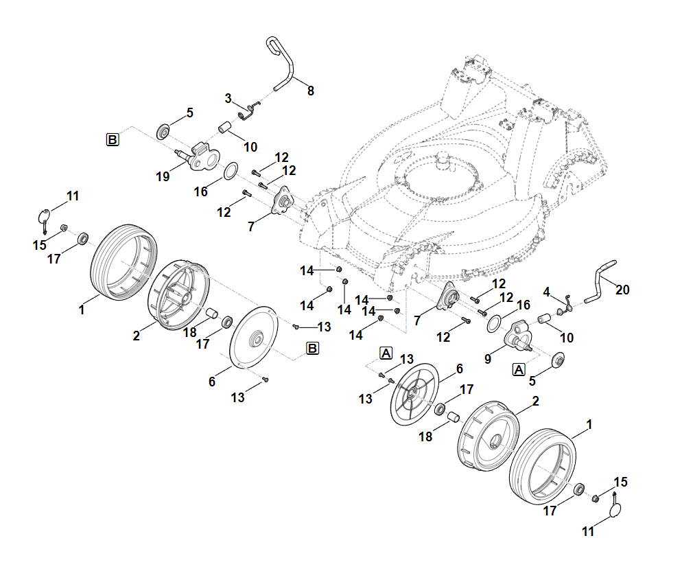 2 | B - Нижняя часть ведущей ручки | RM 756.0 GS | Газонокосилка бензиновая STIHL | Запчасти по России | Сервисное обслуживание