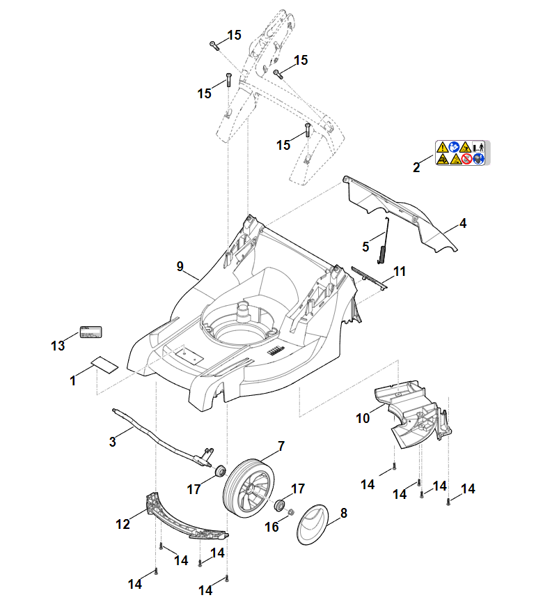 2 | B - Корпус, передняя ось | RMA 443.1 TC | Аккумуляторная газонокосилка STIHL | Запчасти по России | Сервисное обслуживание