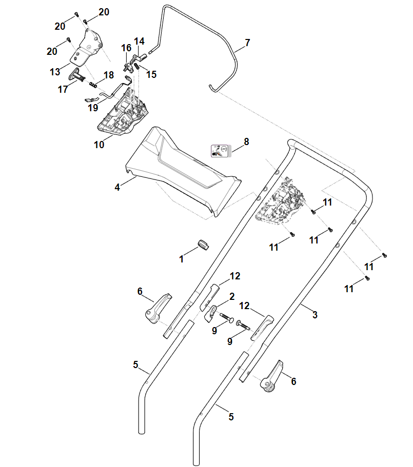 1 | A - Руль | RMA 443.2 | Аккумуляторная газонокосилка STIHL | Запчасти по России | Сервисное обслуживание