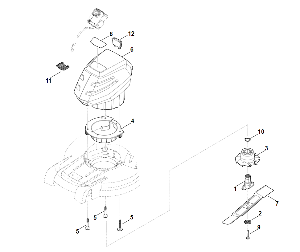 4 | D - Двигатель, нож | RMA 448.1 PC | Аккумуляторная газонокосилка STIHL | Запчасти по России | Сервисное обслуживание