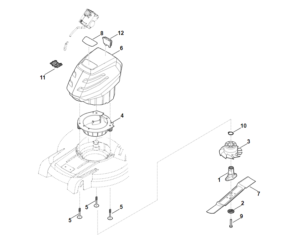 4 | D - Двигатель, нож | RMA 448.1 TC | Аккумуляторная газонокосилка STIHL | Запчасти по России | Сервисное обслуживание