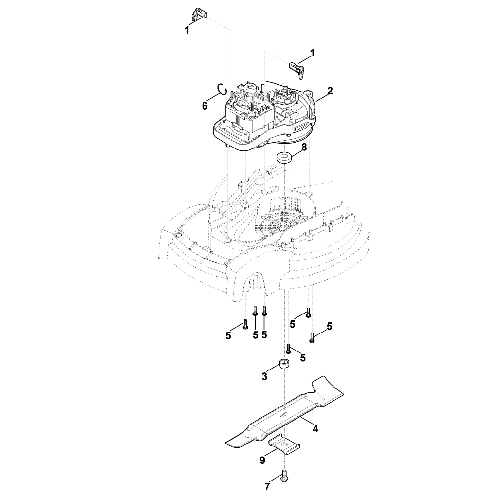 Электрические газонокосилки (Штиль)  RME 235.0  Двигатель, нож