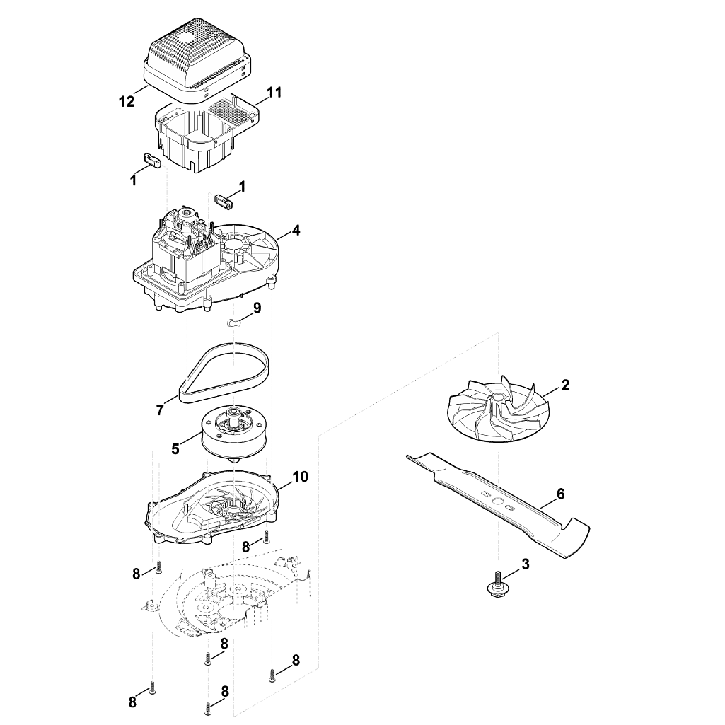 Электрические газонокосилки (Штиль)  RME 339.0  Двигатель, нож
