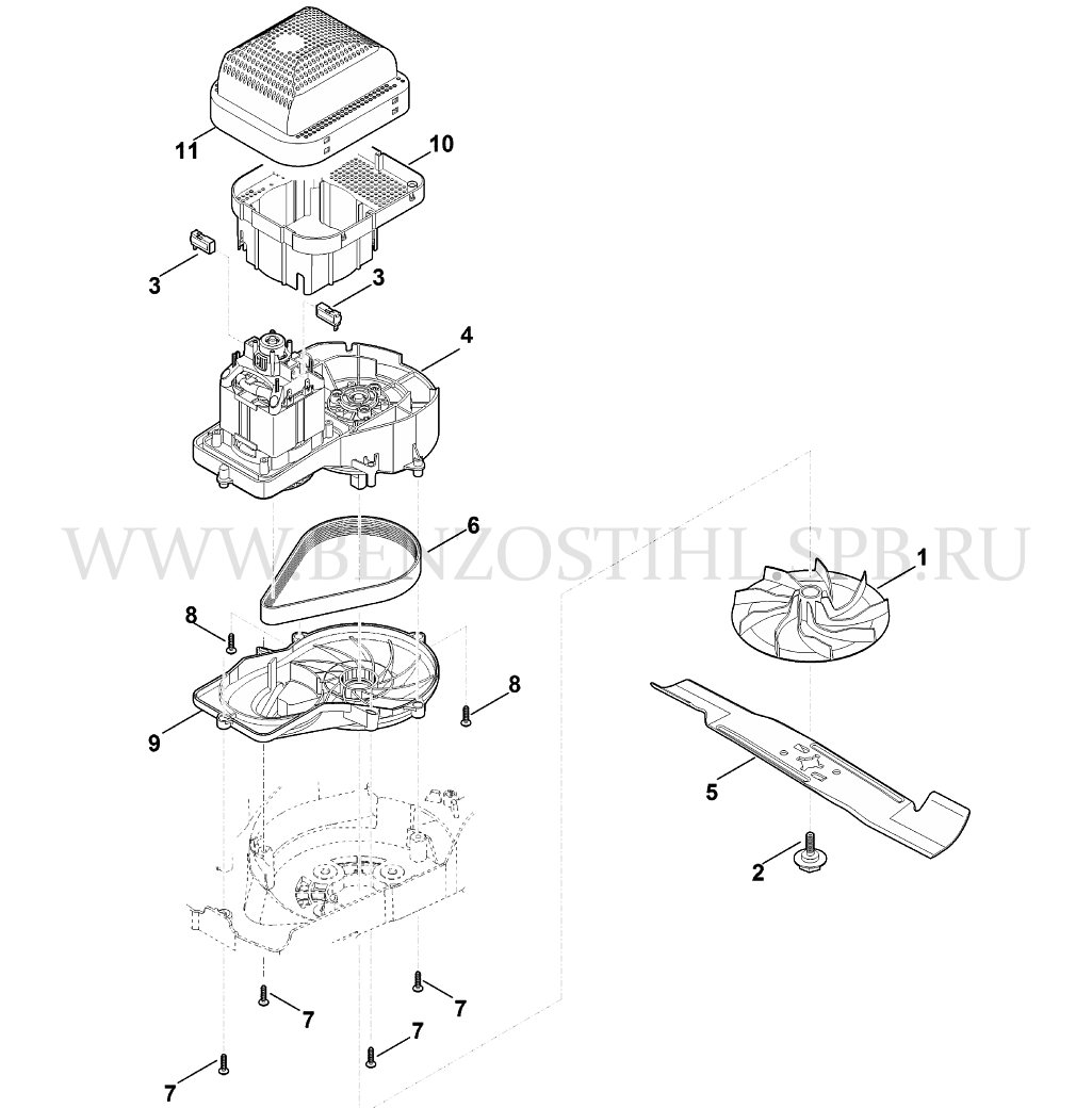 Электрические газонокосилки (Штиль)  RME 443.0 C  Двигатель, нож