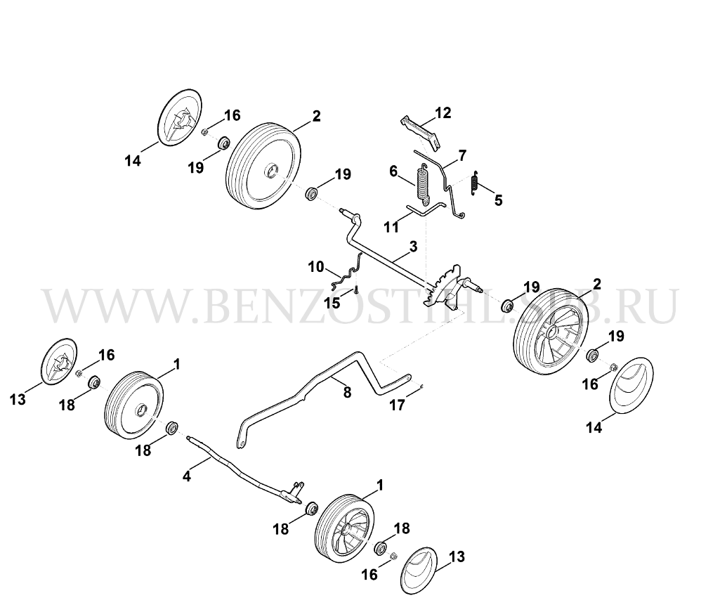 Электрические газонокосилки (Штиль)  RME 443.0 C  Механизм для перемещения, регулирование по высоте
