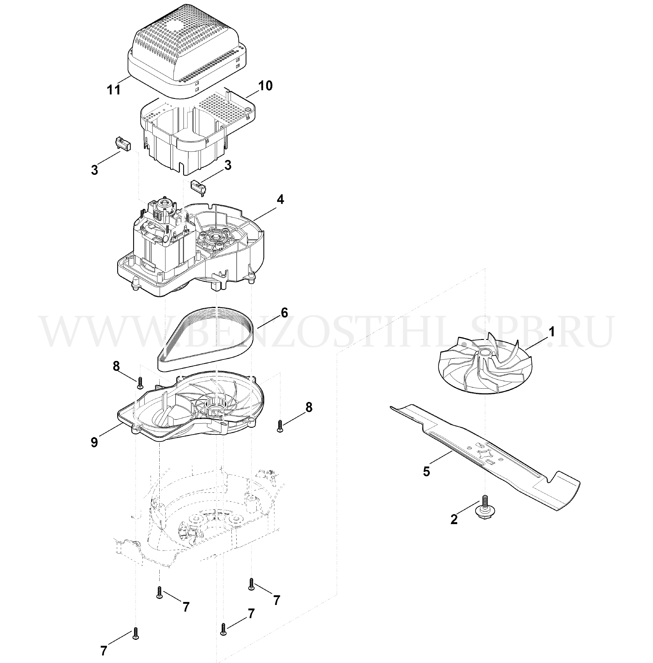 Электрические газонокосилки (Штиль) RME 443.0 Двигатель, нож