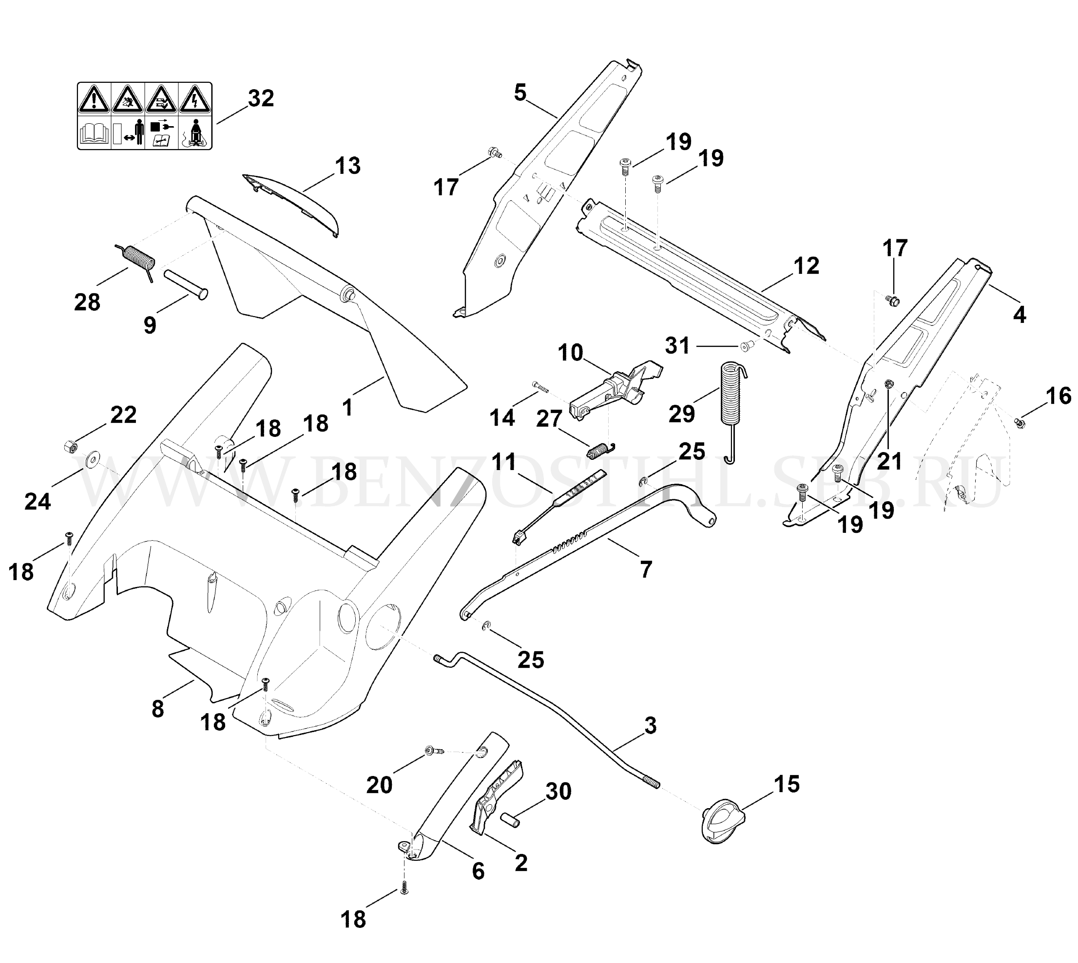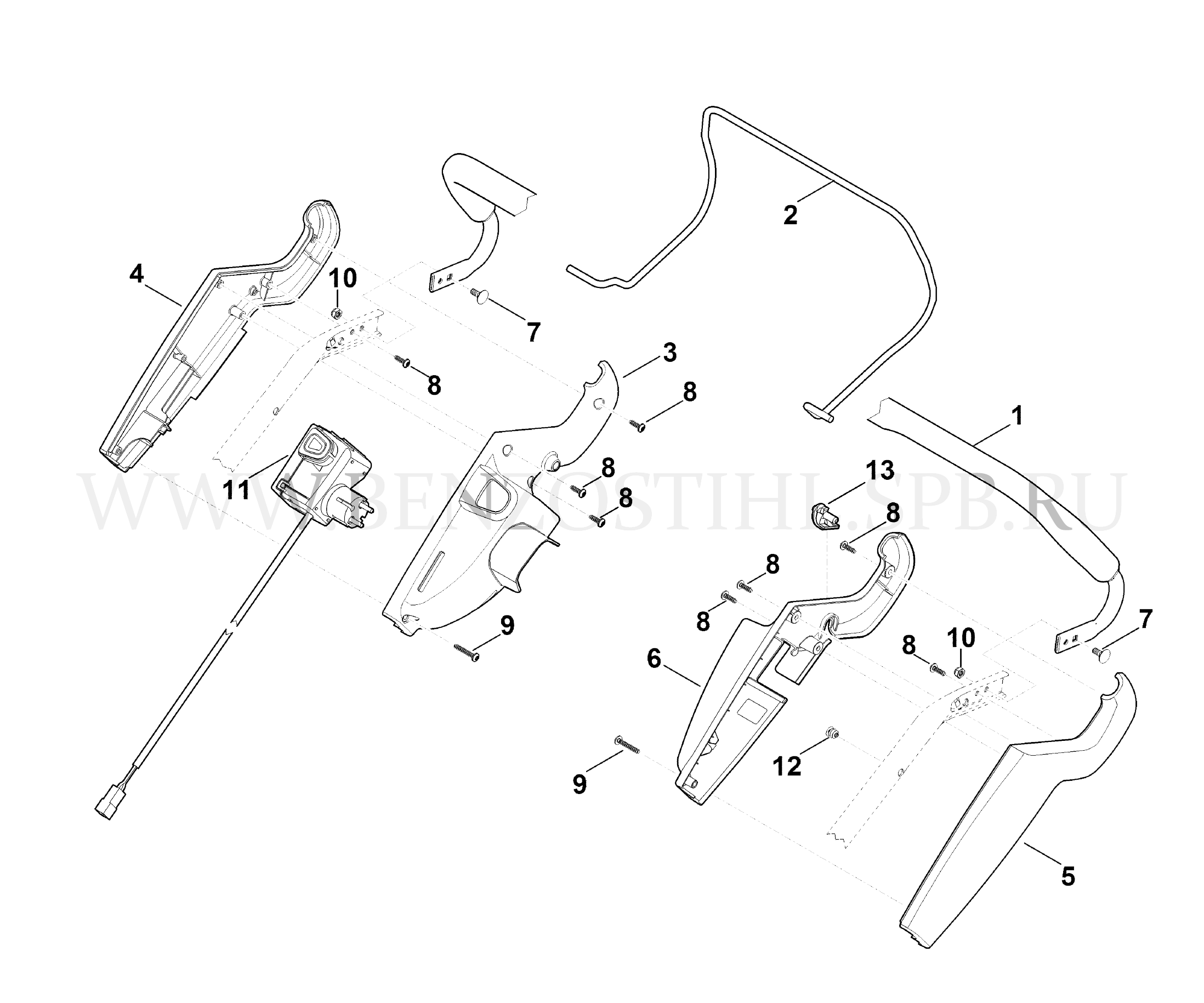 Электрические газонокосилки (Штиль) RME 545.0 C Нижняя часть ведущей ручки