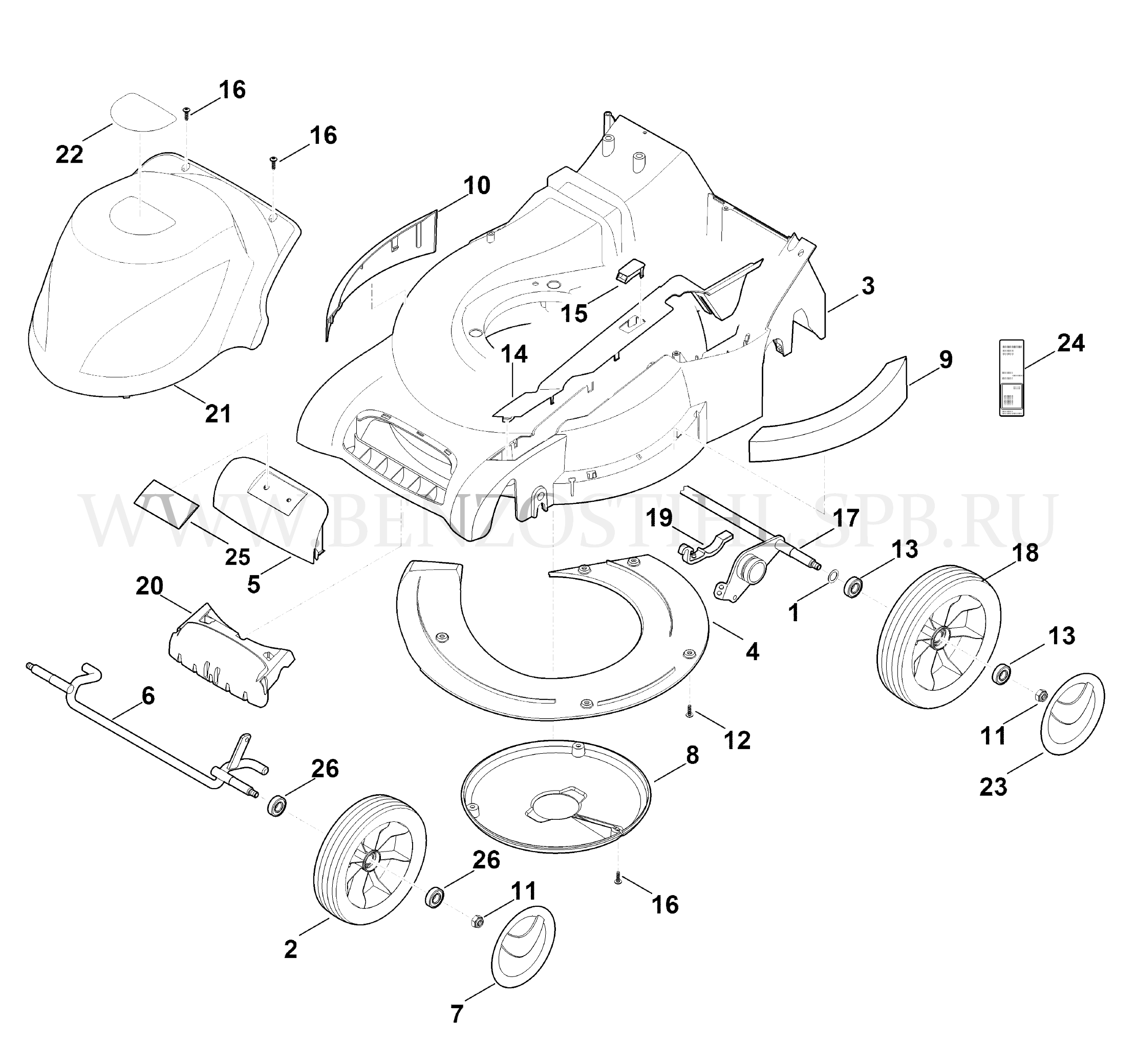 Электрические газонокосилки (Штиль) RME 545.0 C Корпус, ходовая часть