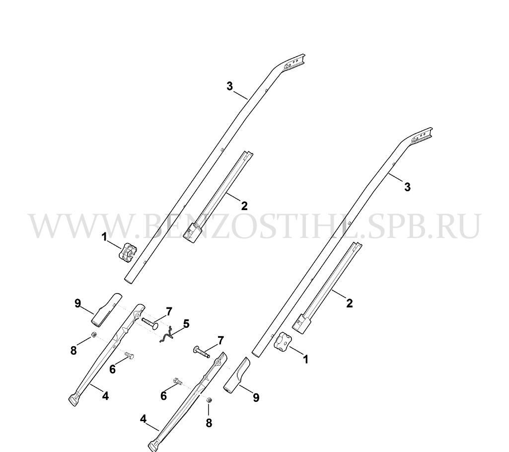 Электрические газонокосилки (Штиль)  RME 545.0 C  Нижняя часть ведущей ручки