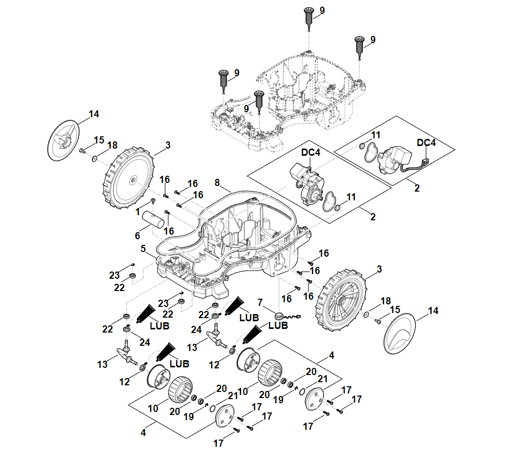3 | C - Нижняя часть корпуса, ходовая часть |Робот-газонокосилка RMI 422.1 | Запчасти по России | Ремонт