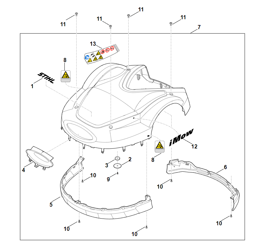 2 | B - Верхняя часть корпуса | Робот-газонокосилка RMI 632.0 | Запчасти по России | Ремонт